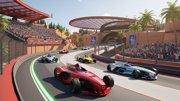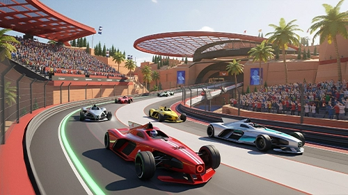 Experience the raw power of open wheel cars kicking up dust. Battle rivals on challenging circuits under the sunny coastal skies.